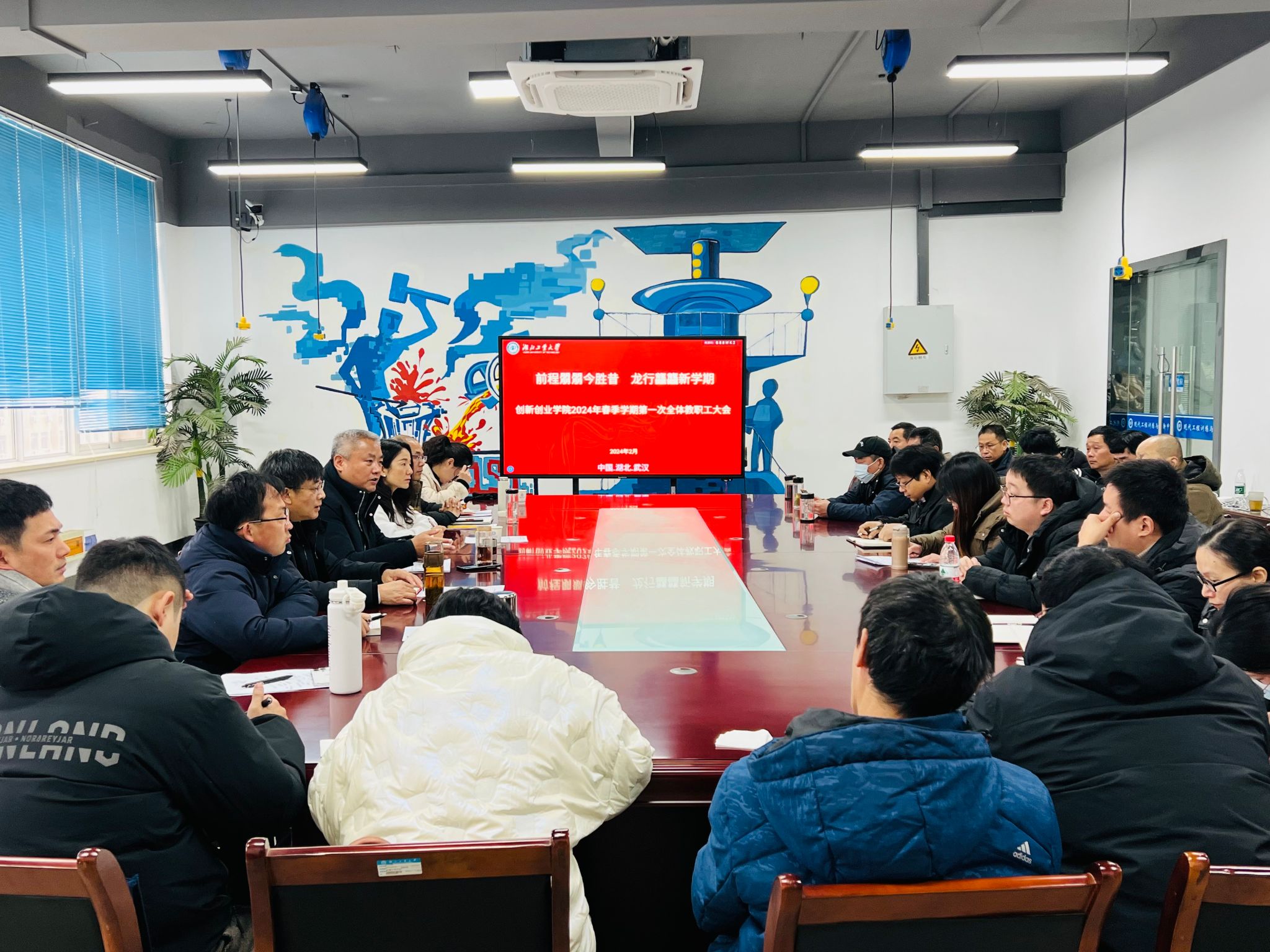2月26日上午9时,创新创业学院2024年春季学期第一次全院教职工大会在金工楼四楼会议室召开,会议由学院副院长马小红主持,全院教职工参加了本次会议。本次会议主题为”前程朤朤今胜昔,龙行龘龘新学期”,旨在汇聚学院师资力量,梳理2024学年春季学期工作重点,共同探讨学院的发展方向,共谋学院发展新篇章。