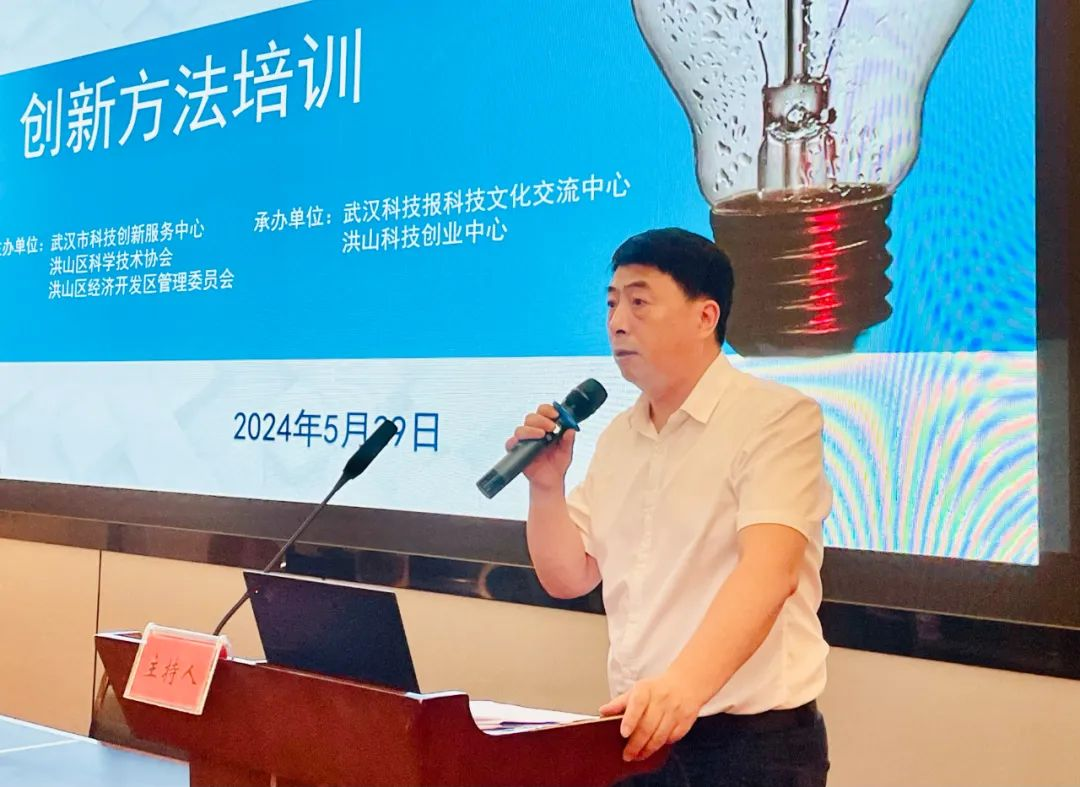 5月29日下午,洪山区科协联合武汉市科技创新服务中心、洪山区经济开发区管理委员会组织洪山区各企业科技工作者开展创新方法培训,将科创服务搬进科技园区。培训主题为《TRIZ创新方法概述以及生产管理中的应用案例》,由湖北工业大学创新创业学院教授邓援超主讲。