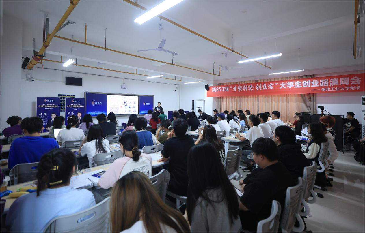 6月6日,由湖北省人力资源和社会保障厅指导,省人才事业发展中心主办的第253期“才聚荆楚·创立方”大学生创业路演周会在湖北工业大学成功举办。湖北工业大学创新创业学院组织创业园区内6家企业项目参与路演,园区其他企业也纷纷到场观摩学习。