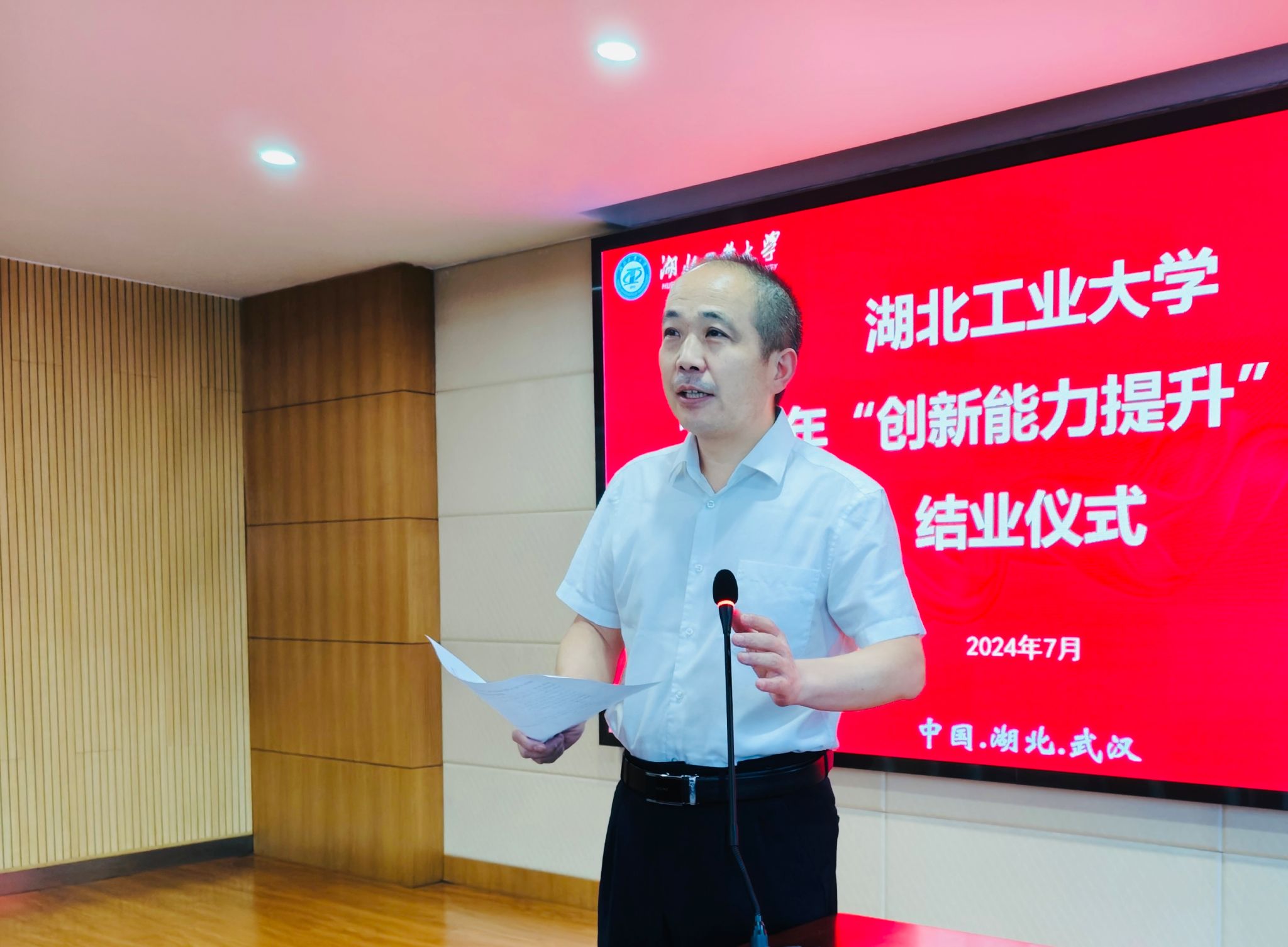 7月20日,湖北工业大学2024年“创新能力提升”培训班圆满收官,创新创业学院领导班子、全体授课老师、培训班全体学员参加了结业仪式。结业仪式由柯长仁副院长主持。