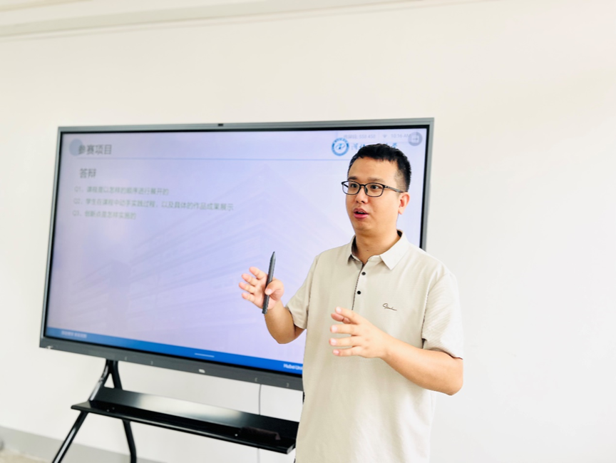 应之歌老师对工程创客大赛竞赛流程进行了简单的介绍,重点分享了自己参赛项目的核心内容、创新点;陈含德老师则从参赛项目教学设计和课程实施的角度,补充了思想政治教育与专业教育融合的重要性,以及如何通过教学活动设计提升学生参与度和学习获得感。