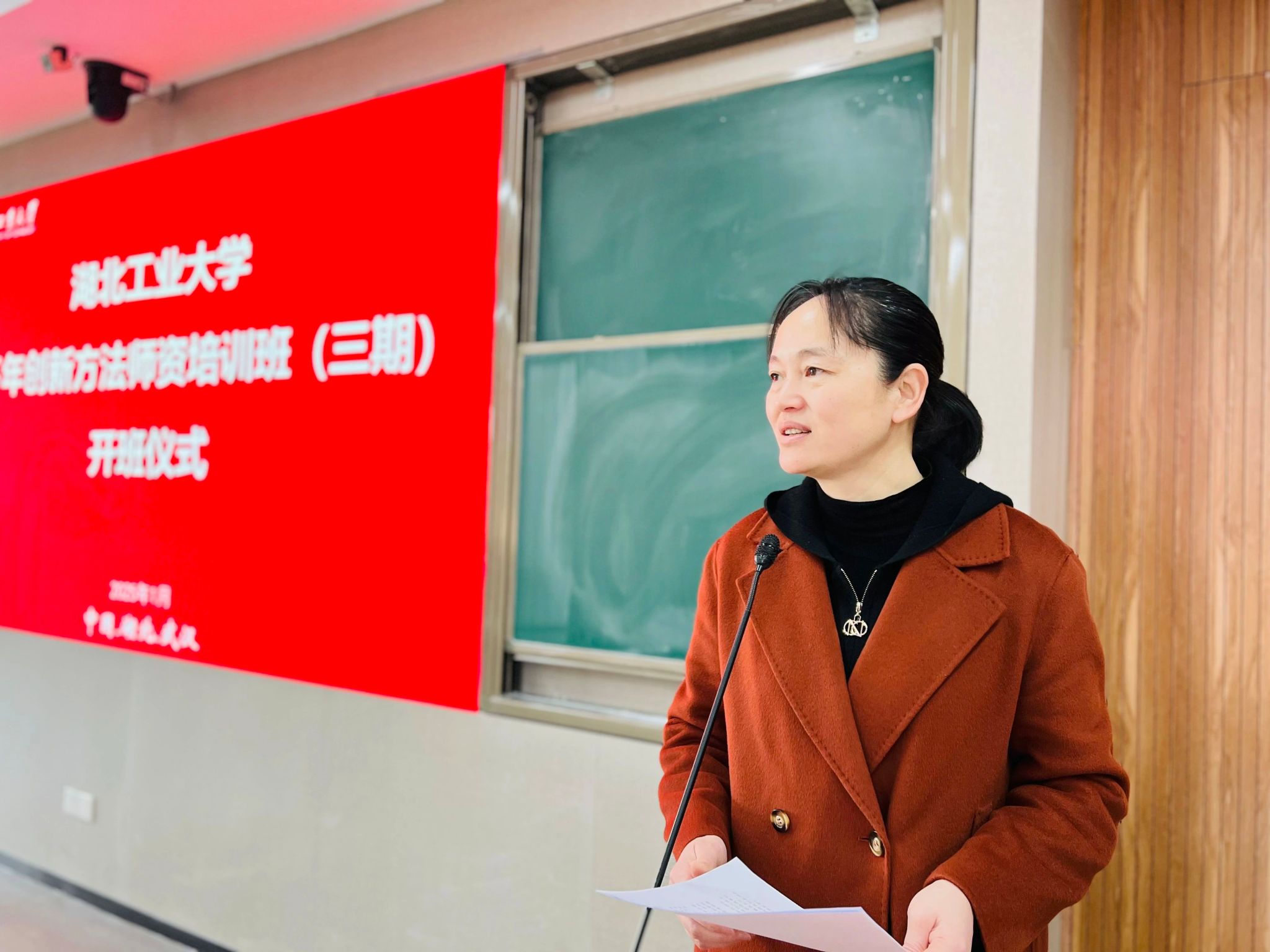 桂丽指出,创新教育是人才培养的重要组成部分,学校一直秉承产科教融合的理念,致力培养实践能力强的高素质创新型人才。桂丽对培训班提出了四点希望:一是希望创新创业学院能够继续细致规划并精心筹备,做好培训的组织和服务工作,让每位参训学员及全体指导教师都能感受到强烈的归属感、成就感及获得感,让整个培训充满温暖、温情和温馨;二是本次培训恰逢短学期,且紧接着周末,教师们面临着学习、家庭与科研的多重压力,希望所有学员能够积极克服各种困难,确保充足的学习时间,全身心、全过程、全要素地投入到学习中,取得全面深入的收获,实现全方位、多维度的成长;三是希望以创新师资培训为切入点,构建一个教学内容统一、教学要求一致、教育水平卓越的创新教育体系。实现课程与竞赛的结合、理论与实践的融合、专业教育与创新创业教育的融汇,打造一个从“创新”到“创业”的全流程服务链,推动我校创新创业教育工作迈向新的台阶;四是希望我校的创新师资培训能走出校园,面向湖北,积极邀请其他高校从事创新教育的教师来我校进行交流与学习,扩大我校国家级双创示范学院的影响力,促进我省创新方法研究、交流与应用,提高我省高校创新教育水平。