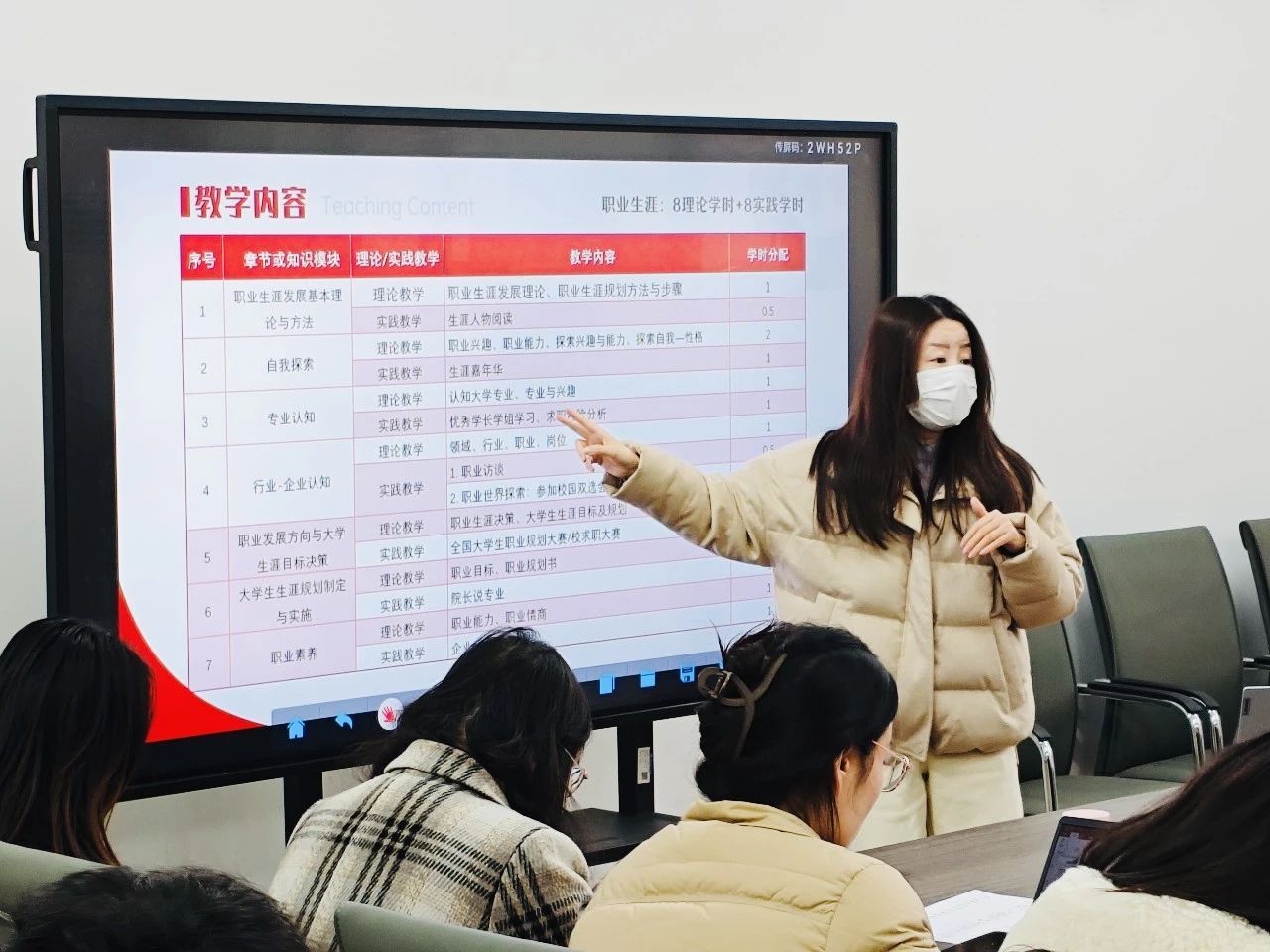 大学生职业生涯规划教研室主任刘琦简单介绍了新学期《大学生生涯发展与就业指导》-1课程的授课要点。重点介绍了课程改革后,实践学时所对应的实践活动及计分情况。刘琦根据上学期各位老师在本课程的授课过程和经验总结,提出新学期课程教学开展过程可能会遇到的困难和问题,为课程教学顺利开展有预见性地提供了行之有效的解题思路和授课建议。