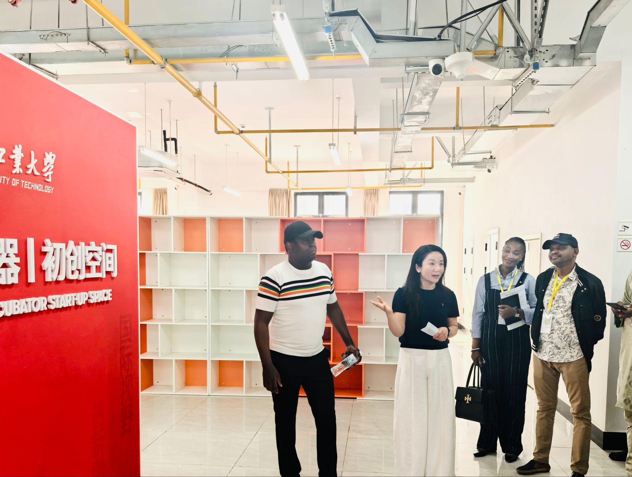随后,来访人员考察了学校科技企业孵化器,马小红向大家阐述了学校创业支撑体系的具体内容,介绍了孵化器管理制度体系,创业空间、初创空间及相关公共设施的实际情况,并带大家深入初创空间,感受办公环境和文化建设氛围。来访人员表示湖北工业大学支持创新创业的务实举措,为非洲高校孵化器建设提供了可借鉴的经验。