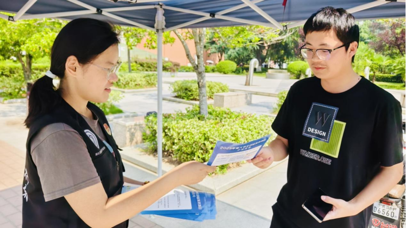 在举办宣讲会的同时,学校还分别在东区、西区、中区和北区食堂附近设立了4个“才聚荆楚创业扶持”服务站点,为同学们发放2025年度湖北省大学生创业扶持政策宣传单,并开展政策解读。