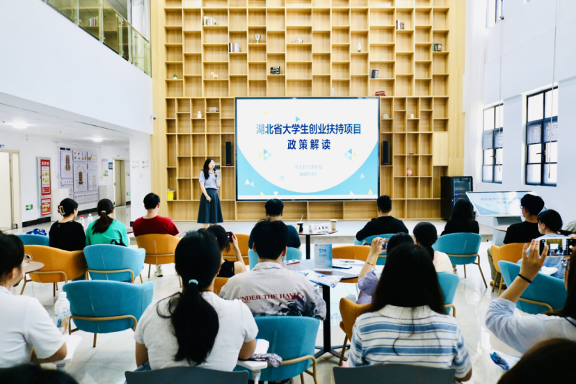 5月29日上午,2025年度湖北省大学生创业扶持项目宣讲会在我校创新创业中心A座三楼艺术品集市举行。湖北省人力资源和社会保障厅就业处四级主任科员王苇杭,湖北省大学生创业孵化联盟秘书长叶凯出席宣讲会并作分享。创新创业学院孵化器管理办公室工作人员,学校科技企业孵化器内50余名入孵企业和项目代表,以及各学院有创业意向的学生参加宣讲会。