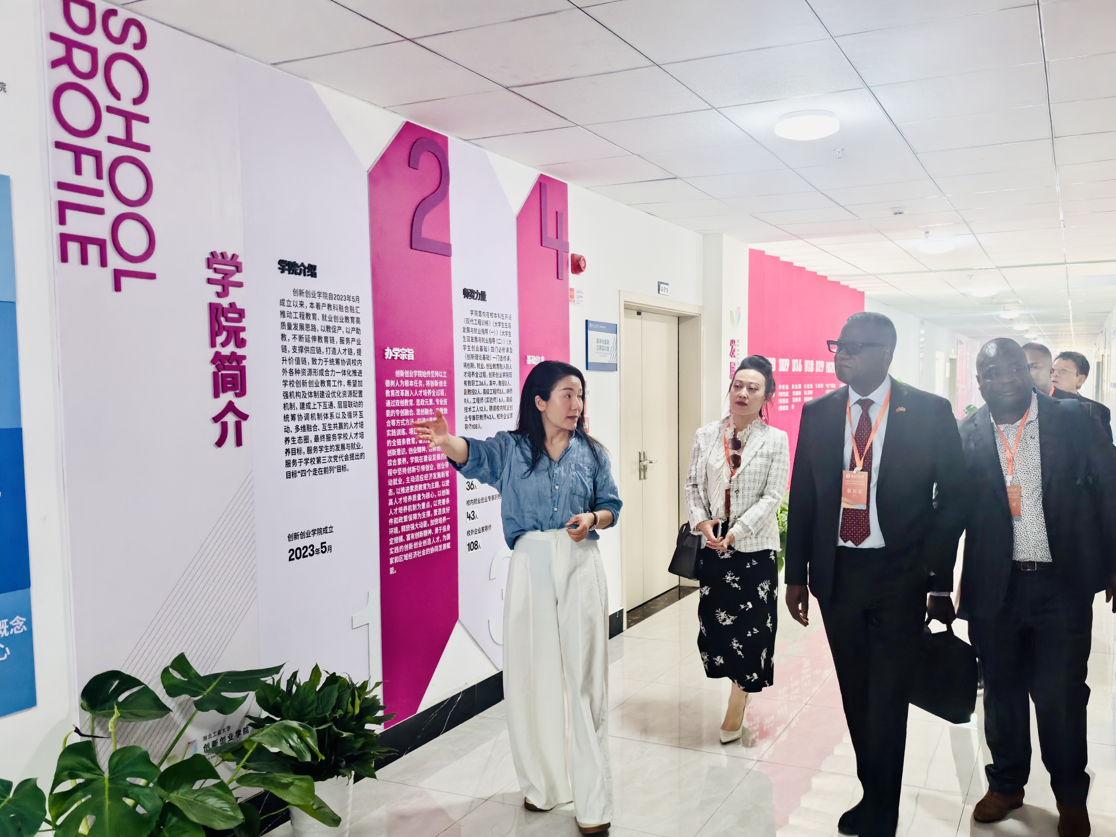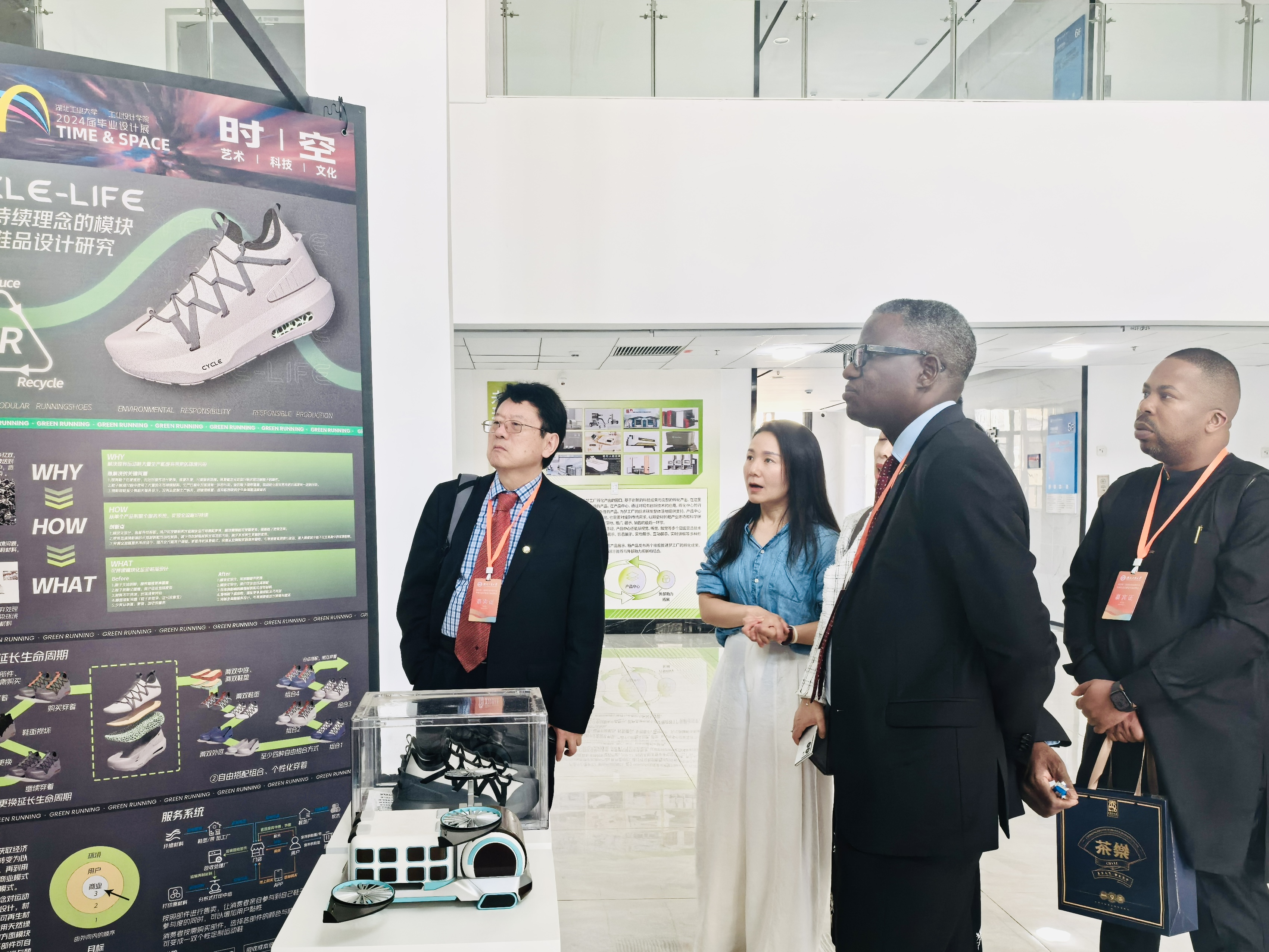 4月25日上午,第二届湖北省高校中非毕业生赴非就业专场招聘会在湖北工业大学举行。期间,受邀参会的南非文达大学校长Bernard Nthambeleni、国际处副处长William Thabo Dikgale、孔子学院外方院长Eric Maluta、孔子学院中方院长葛瑞红、校长办公室中国事务助理王于晨等一行五人实地参访了创新创业学院。创新创业学院副院长马小红、综合办公室主任金相宏陪同参访。