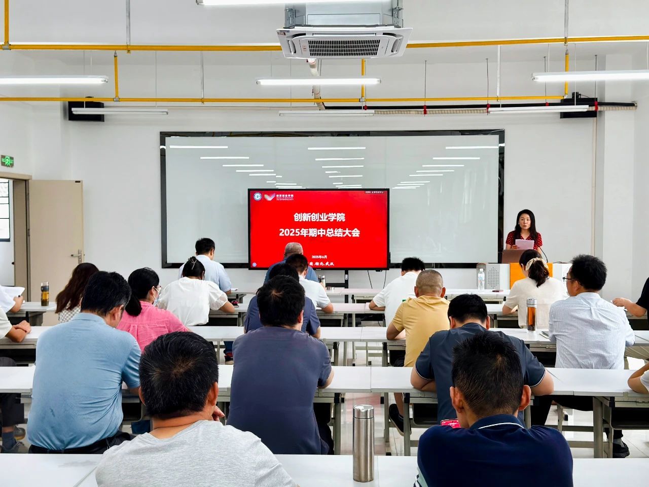 6月25日下午,创新创业学院2025年上半年度工作总结大会在创新创业中心A座519工业机器人实训室召开,学院全体教职工参加了本次会议。会议围绕学院2025年目标任务对本学期工作进行总结,并梳理了暑期工作安排及下学期工作计划。会议由副院长马小红主持。