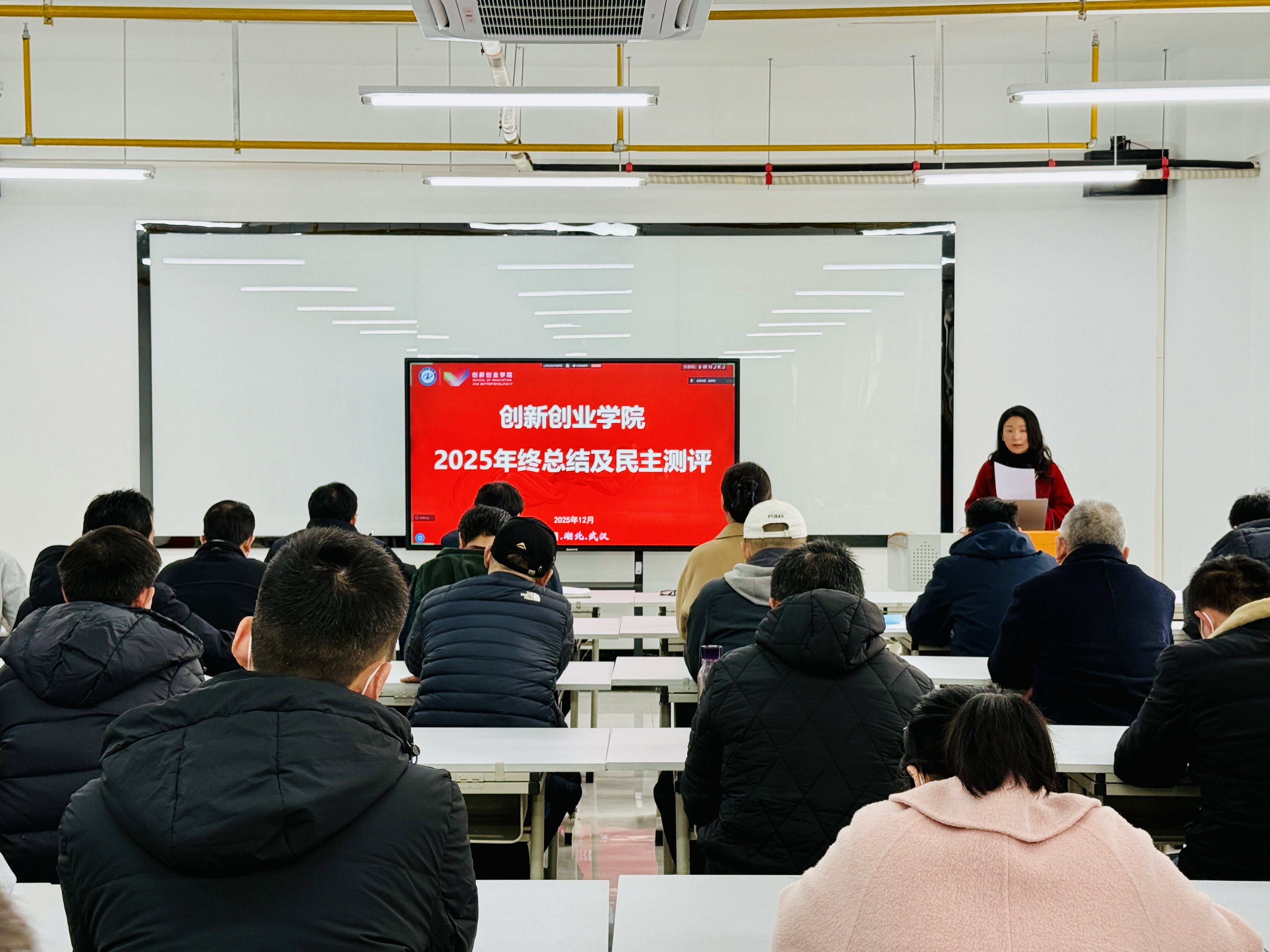 12月30日中午,创新创业学院2025年年终总结大会在双创中心A519工业机器人实训室召开,学院全体教职工参加了本次会议。会上,学院教研室及科室负责人围绕2025年度本部门工作进行了全面总结,并就2026年工作计划作了针对性汇报。同时本着定性定量相结合的原则,结合学院年终考核结果对全院教职工进行2025年民主测评。夏星院长线上参会,此次会议由马小红副院长主持。