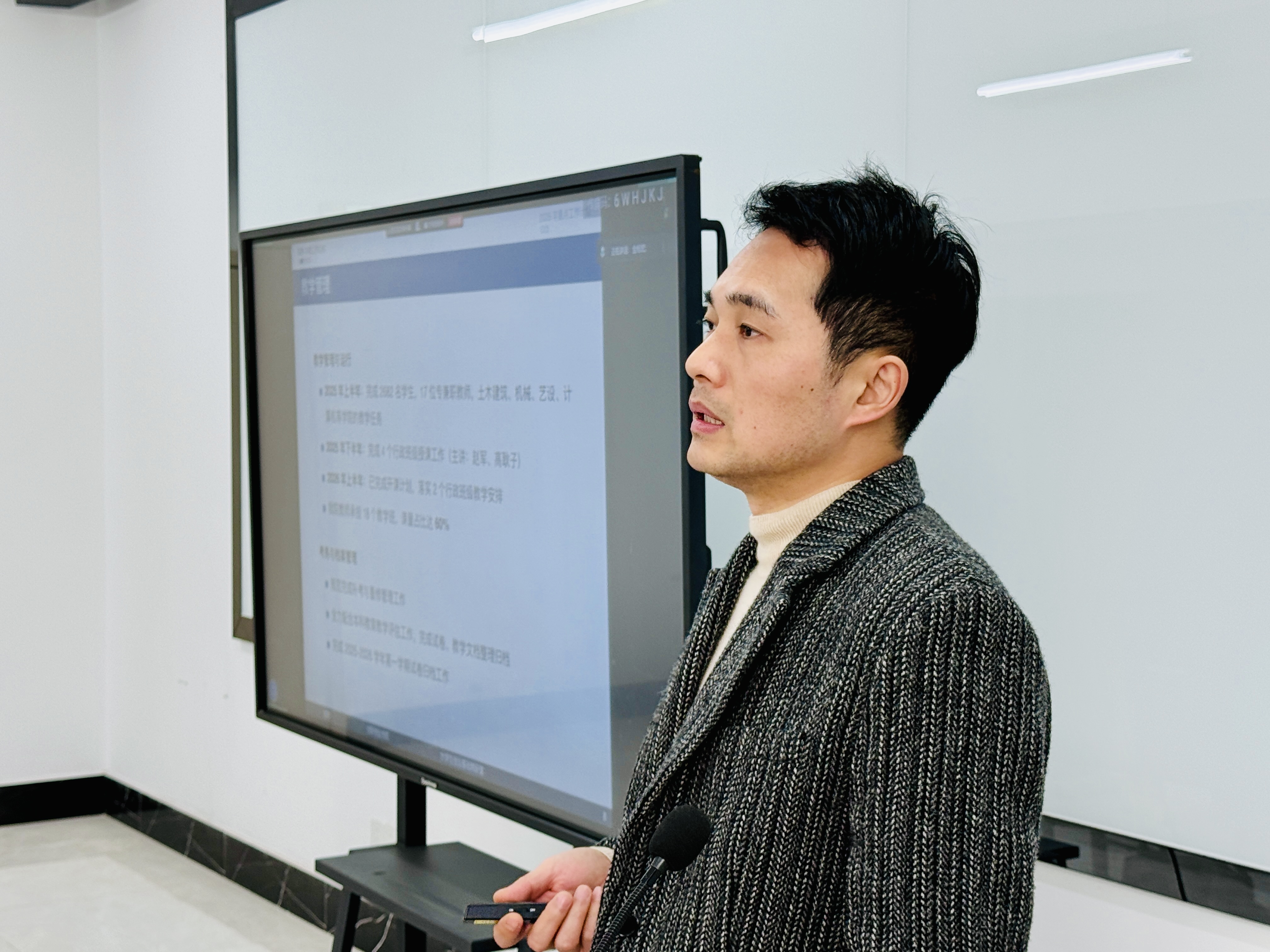 会上,创新教育教研室主任邓援超教授从课程教改、考试方式、数字教材、知识图谱、师资培训、教学质量监督、专利及课题获批、数字化实验室建设、指导学生竞赛等方面系统汇报了2025年度工作。他重点汇报了湖北省创新方法研究会成立,及承办湖北省创新方法大赛等重要成果。最后,他从课程深化、教材优化、研究会发展及社会服务等方面提出了2026年工作计划。