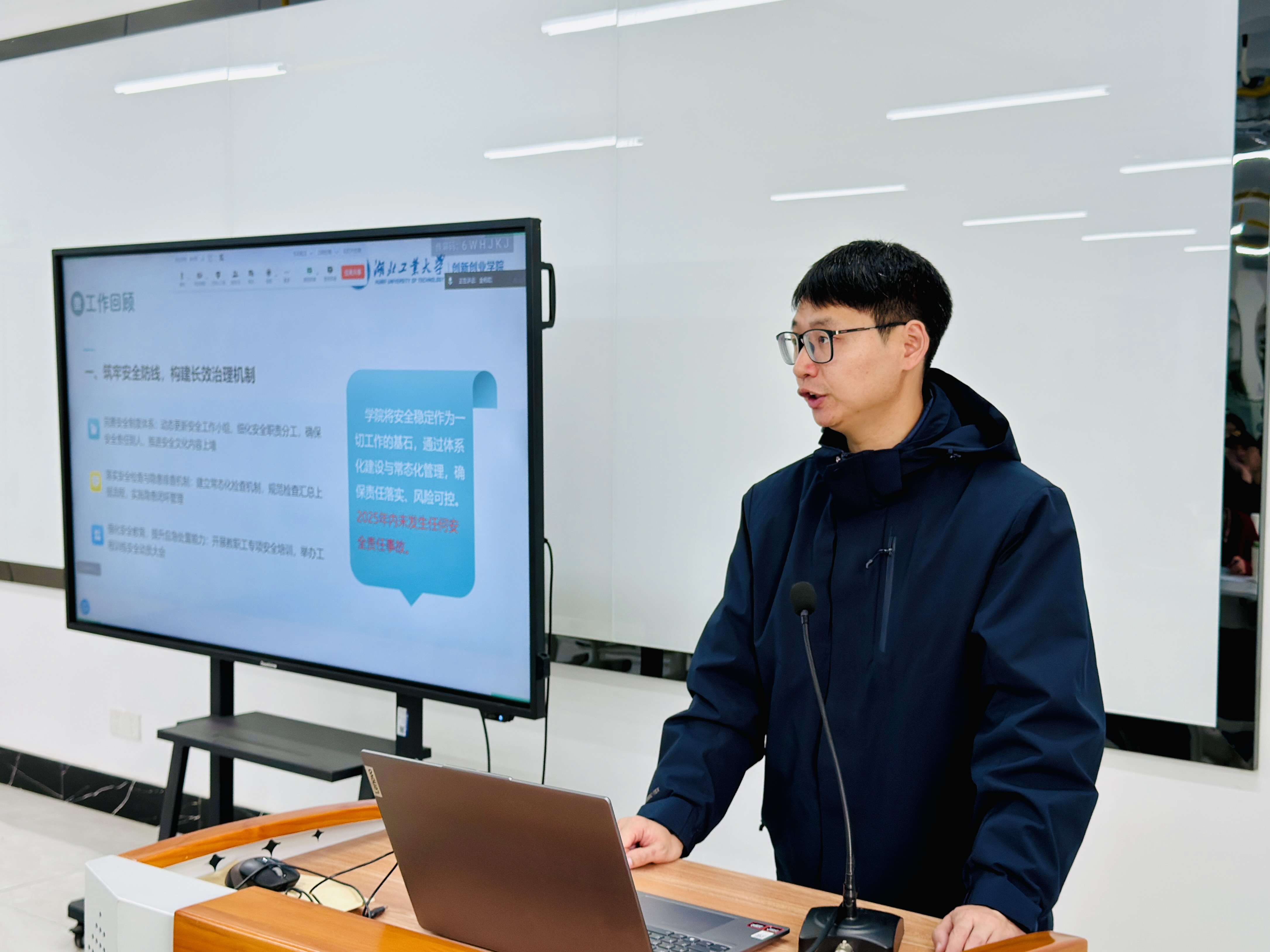 培养办公室主任李绍凡回顾了学院在安全管理、教学安排、思政融合与数字化建设等方面取得的进展,重点介绍了学科竞赛、教研科研等方面成果,并客观阐述了学院2025年学院教学教研科研目标完成情况,重点针对未完成项目分析了当前工作中仍需提升的环节。面向新的一年,他表示要继续稳步推进工程训练改革、优化学科布局、加强双创平台建设,并深化课程与教材创新,进一步夯实人才培养与创新创业教育基础。