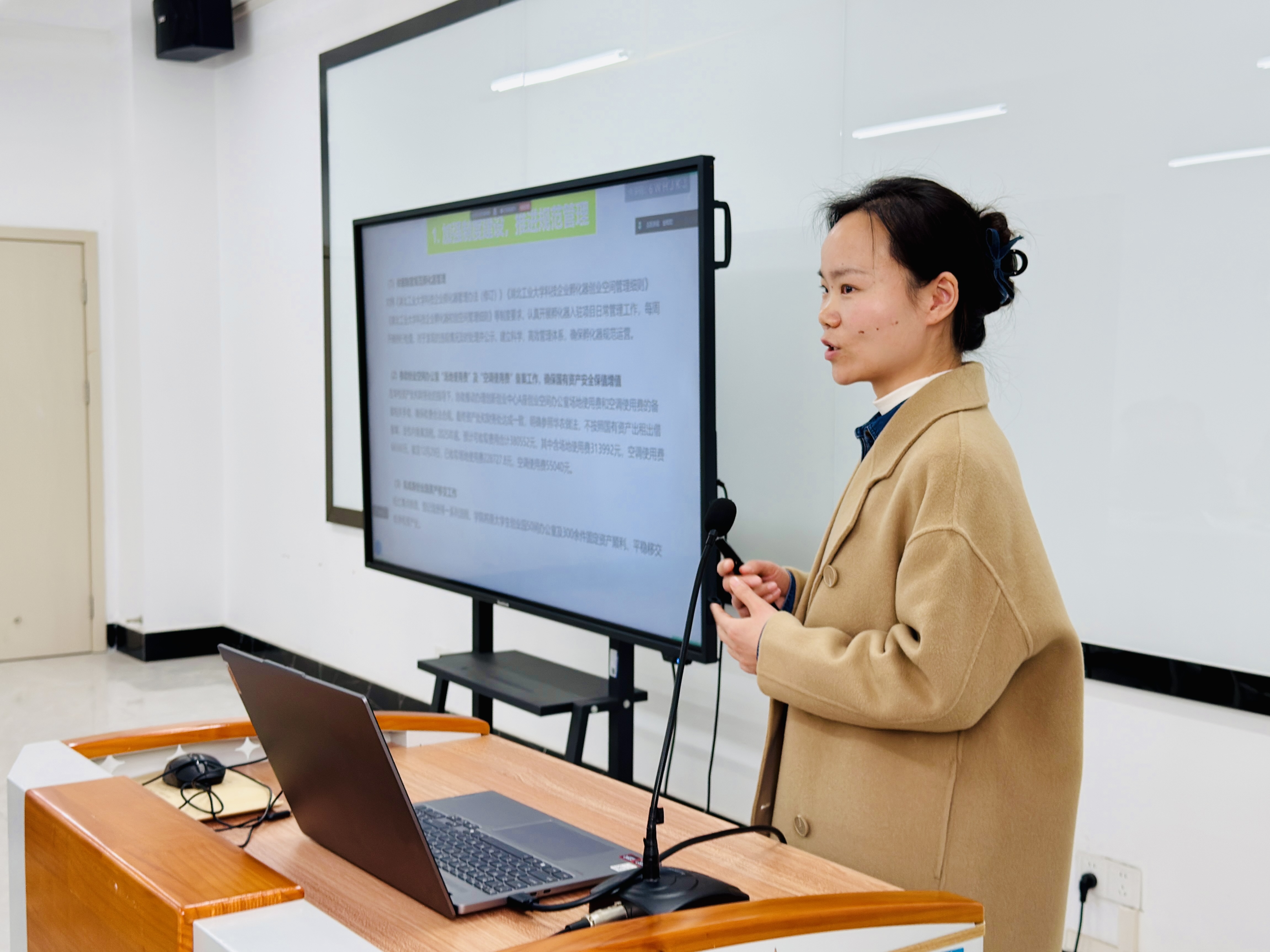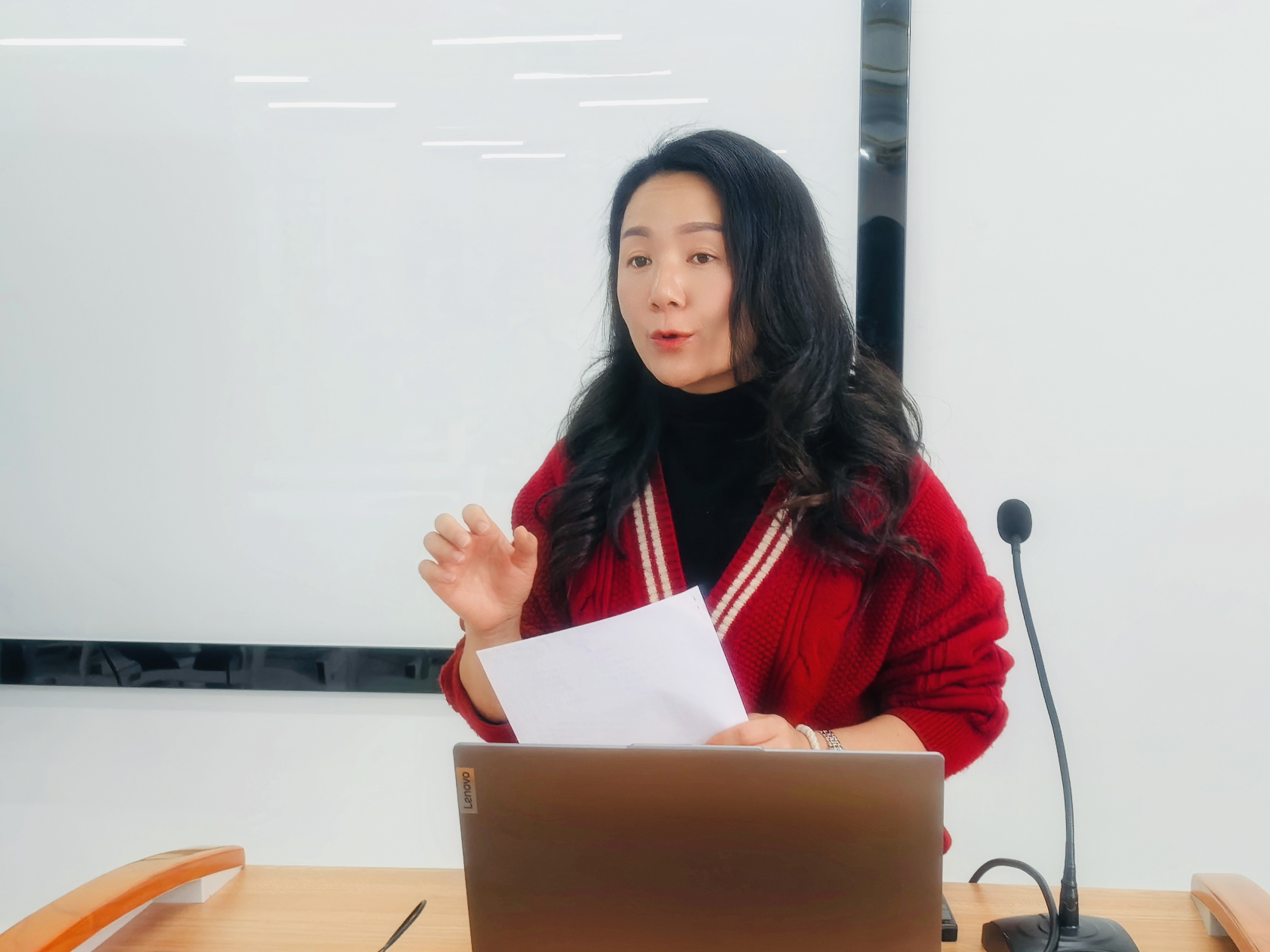 原大学生职业生涯规划教研室主任刘琦汇报了本年度《大学生生涯发展与就业指导-1》课教学任务完成情况,并介绍了知识图谱和智慧课程建设、人生设计实验室推进等教研活动。她指出,教研室本年度积极指导学生入驻科技企业孵化器,指导新生参加职业规划大赛,鼓励课内全体新生参与生涯嘉年华活动,取得了良好效果。最后,她结合年度实践对课程设计进行了总结与反思,并表示后续会将教学优化与活动深化的想法与现行教研室进行沟通与交流。