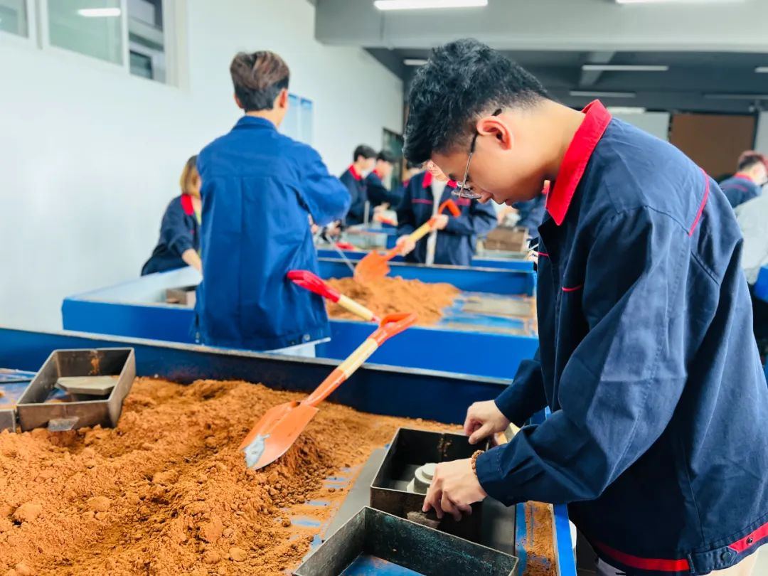 学生在老师的指导下完成编制典型零件铸造工艺卡。通过传统的铸造成型和增材打印成型,操作增材打印机完成产品的铸造。