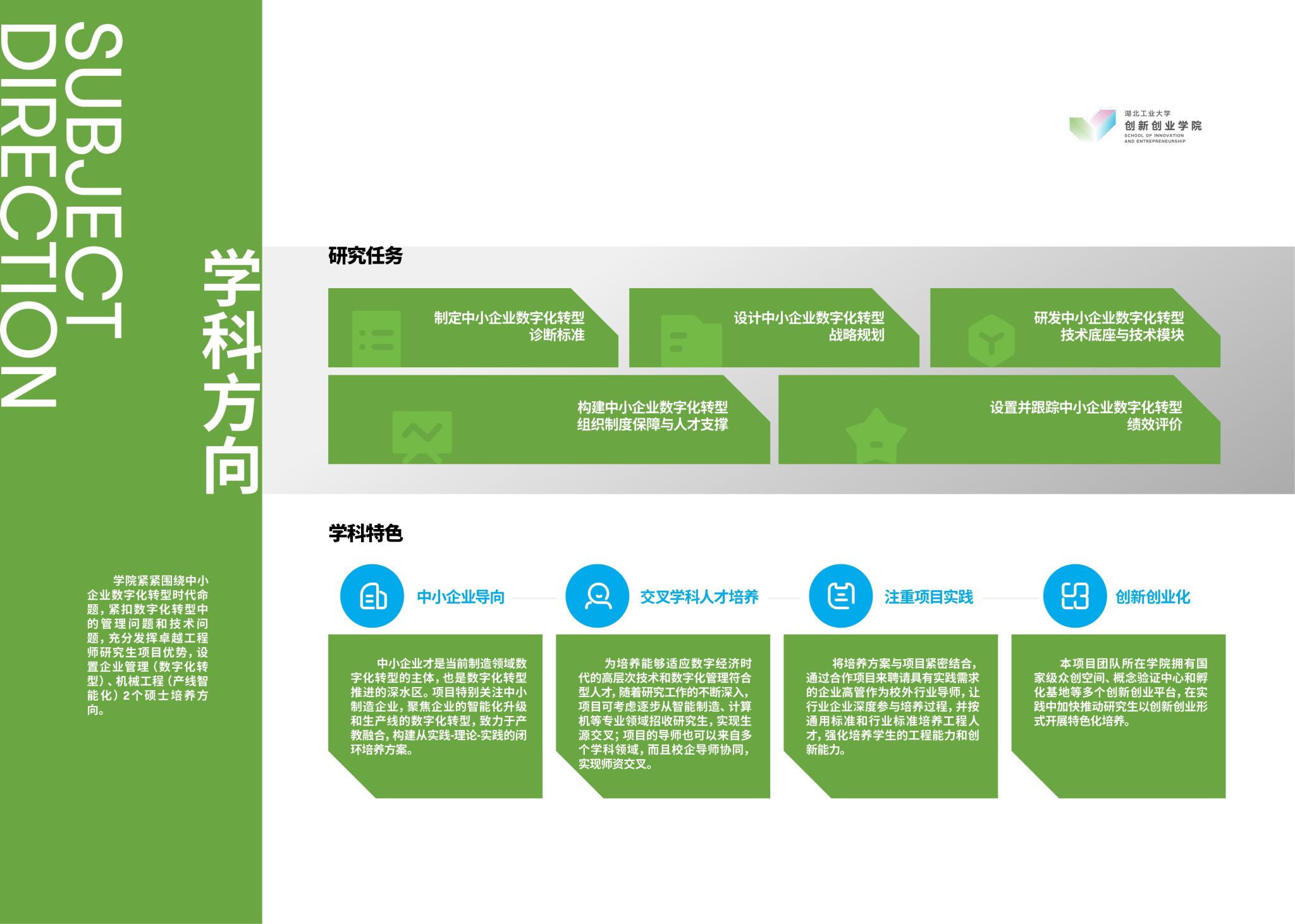 4.项目研究方向及导师团队研究方向:机械工程(产线智能化)为硕士培养方向,进行数字化转型学科专业方向建设。主要研究任务为制定中小企业数字化转型诊断标准,设计中小企业数字化转型战略规划,研发中小企业数字化转型技术底座与技术模块,构建中小企业数字化转型组织制度保障与人才支撑,设置并跟踪中小企业数字化转型绩效评价。
